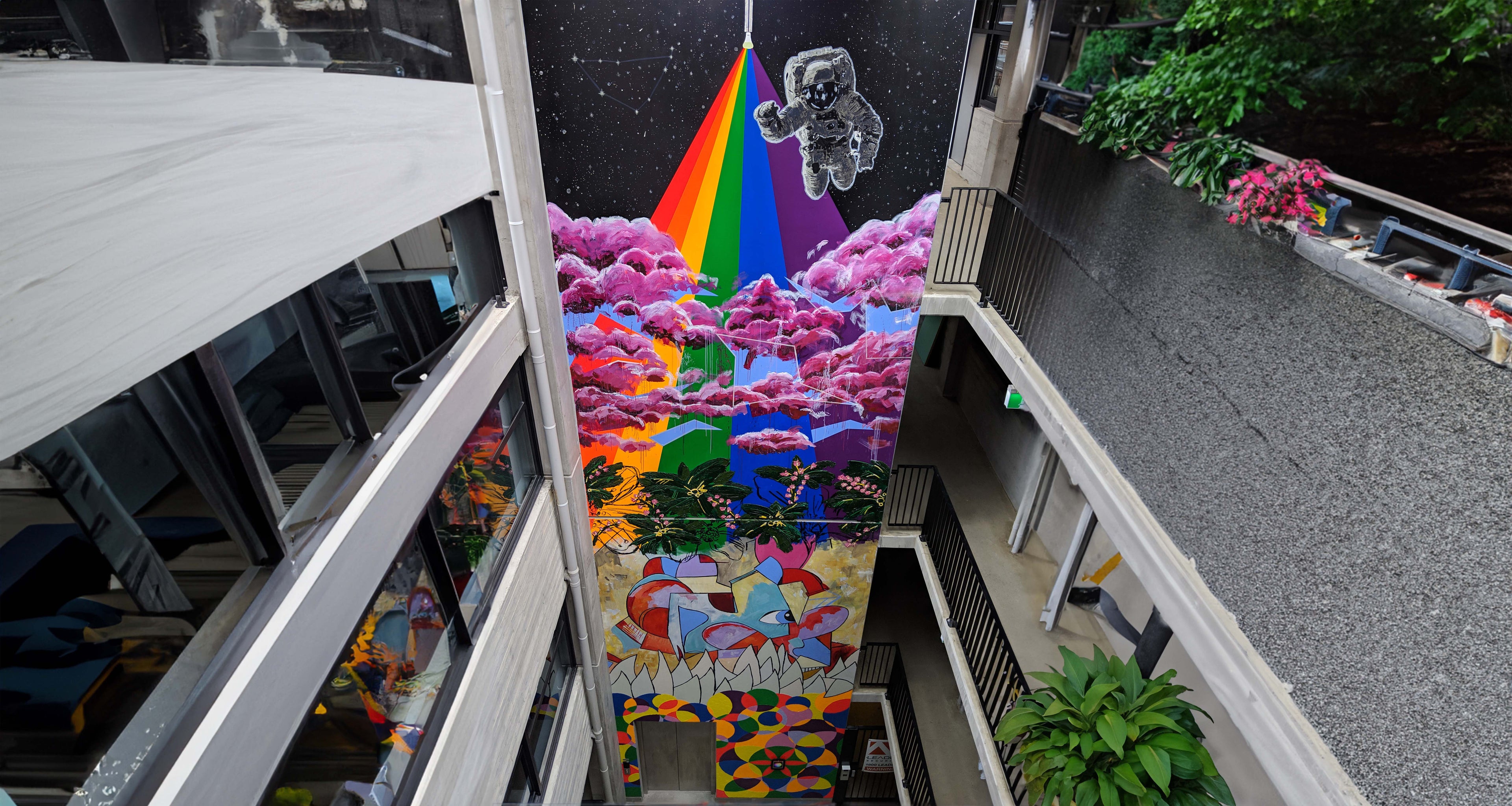If you look closely at the artwork you can see the Kingsborough site overlaid in gold leaf by the artist.